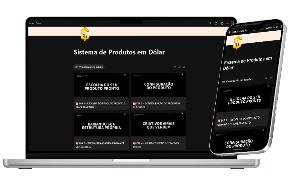 Com o Sistema de Produtos em Dólar, você libera acesso a um combo exclusivo de produtos validados por mim, você só precisa ativar e começar a vender.